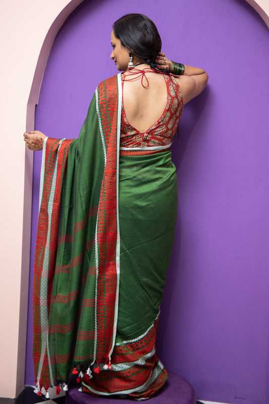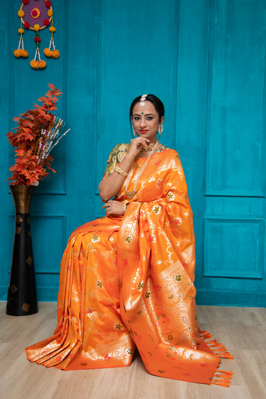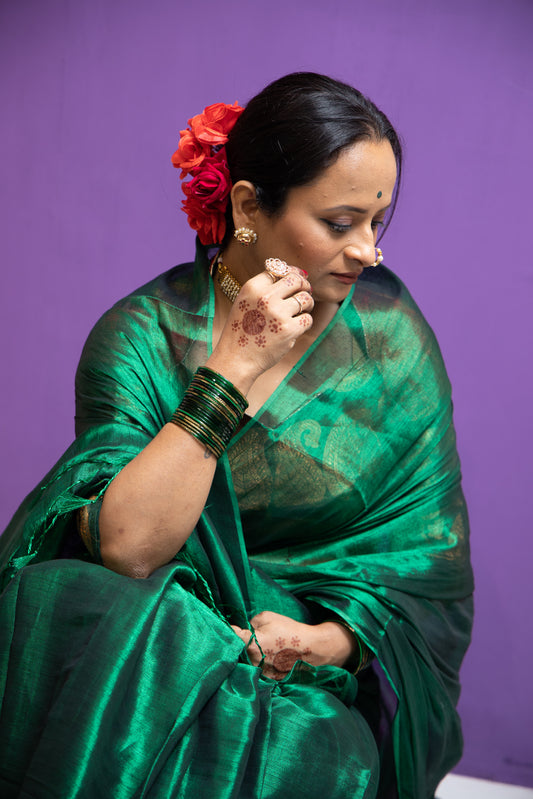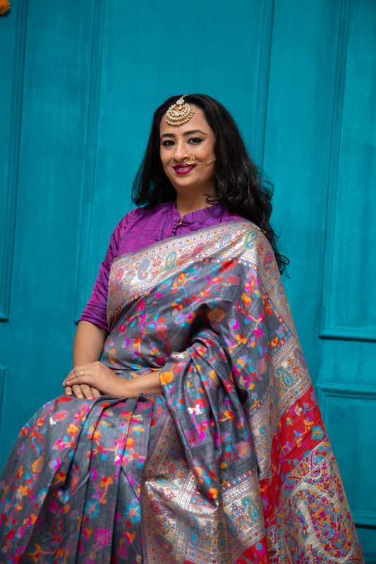 With Banarasi borders, Pashmina-inspired weaves, and Paithani’s iconic peacocks, this saree is a tribute to tradition, reimagined for the modern woman.
