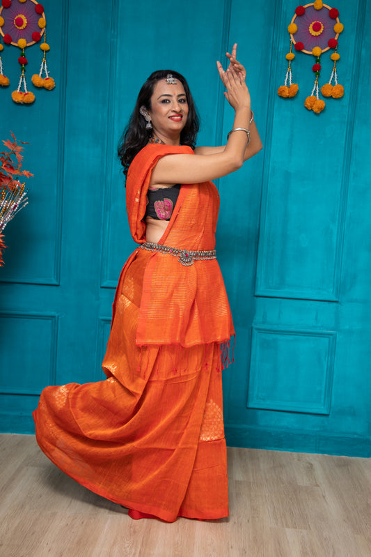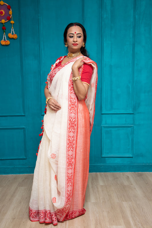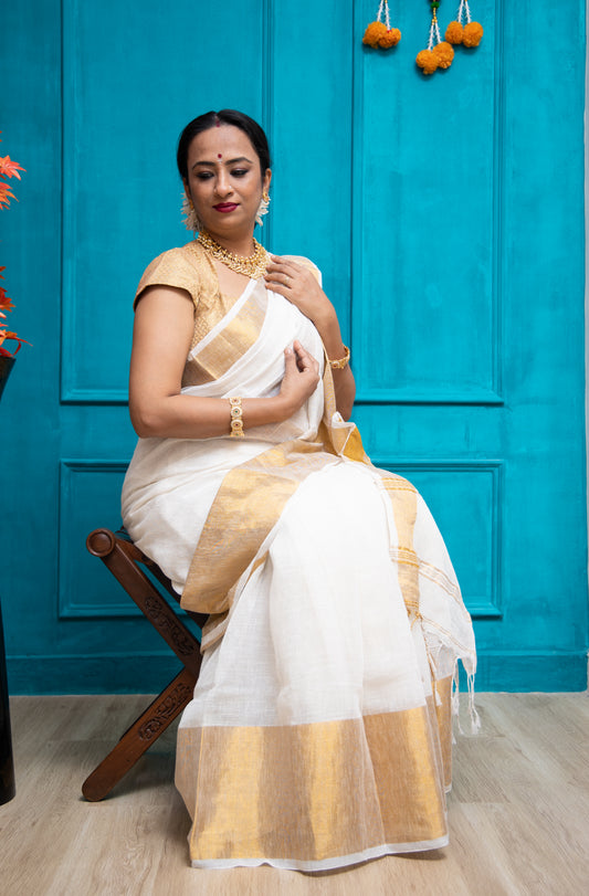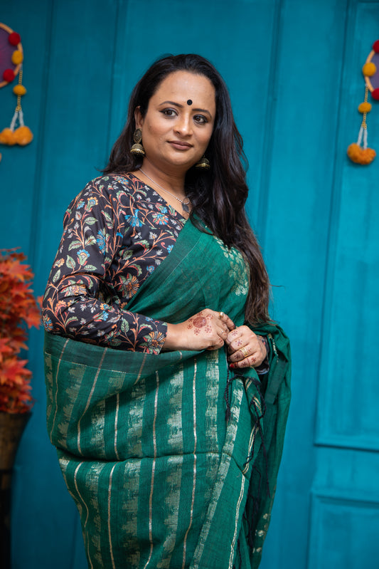 Our range is thoughtfully curated—cotton, linen, crepe silk, Jamdani linen, Maheshwari, Banarasi and more—balancing comfort with elegance for everyday wear, celebrations, office days, and everything in between